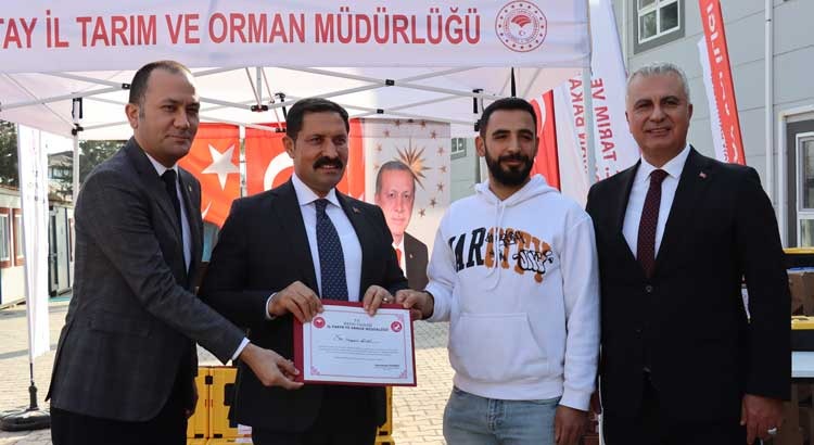 Vali Mustafa Masatlı, Antakya, Hassa, Kırıkhan, Kumlu ve Reyhanlı ilçelerinde faaliyet gösteren 70 üreticiye ekipman dağıtımı için İl Tarım ve Orman Müdürlüğü bahçesinde düzenlenen törene katıldı.