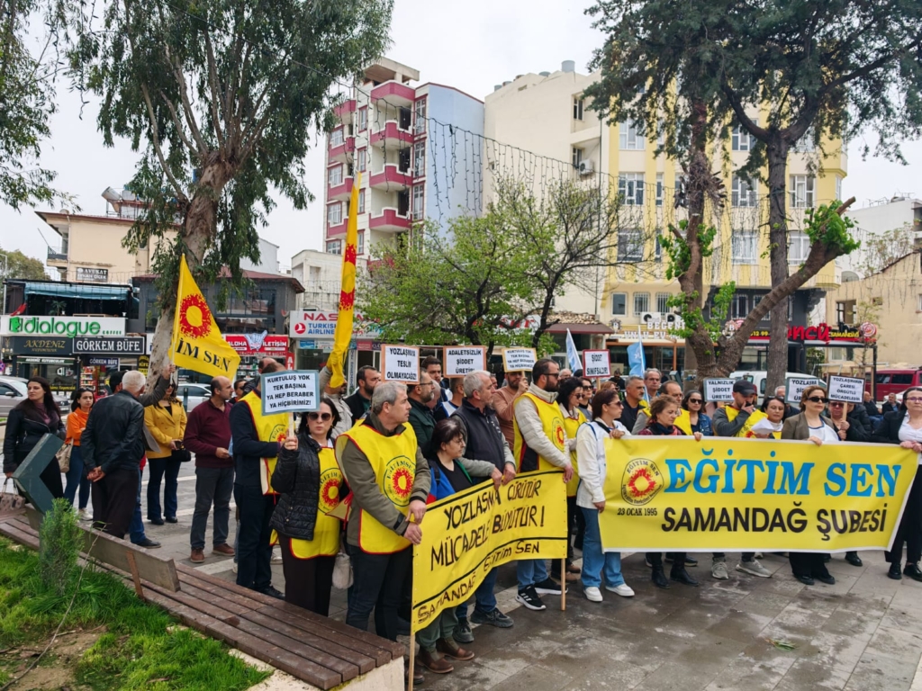 Samandağ Eğitim Sen Şube Yönetimi, Siverek’te bir okula yönelik gerçekleştirilen saldırıya tepki göstermek amacıyla 1 günlük iş bırakma eylemi yaptı. Eylemin ardından sendika üyeleri, Abdullah Cömert Alanı’nda toplanarak basın açıklamasıyla yaşanan olayı protesto etti.