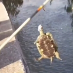 AMATÖR BALIKÇILARIN OLTASINA KAPLUMBAĞA TAKILDI