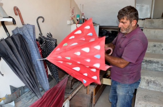 Bir dönemin vazgeçilmez mesleklerinden biri olan şemsiye tamirciliği, günümüzde neredeyse tarihe karışmak üzere. Dayanıklı, tamiri mümkün...