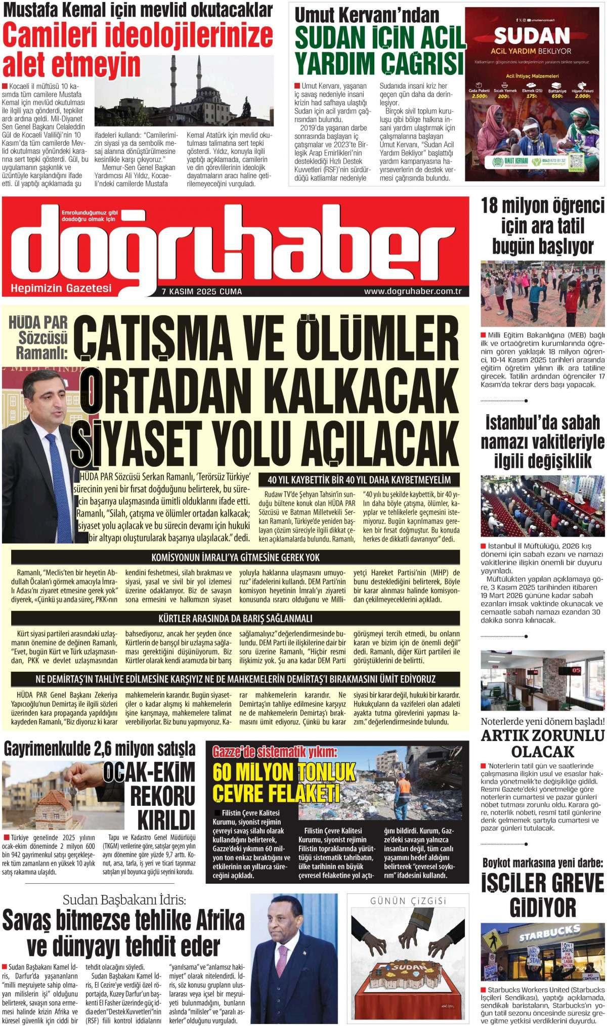 Doğru Haber Gazetesi 7 November 2025, Friday Günü Manşeti