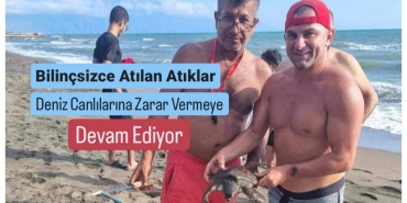 ÇUVALA TAKILAN YAVRU CARETTA CARETTA’YI SAMANDAĞLI BALIKÇILAR KURTARDI
