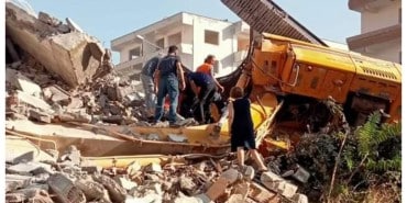 İŞ MAKİNESİ YIKILAN BİNANIN ALTINDA KALDI