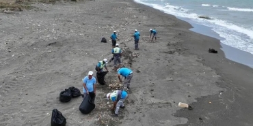 80 PERSONELLE SAHİLDE ELLE TEMİZLİK YAPILDI